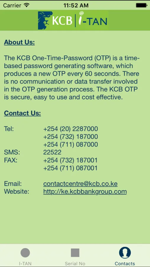 KCB I-TAN converts your phone into a token. No more waiting for SMS and Email tokens for your internet banking transactions.