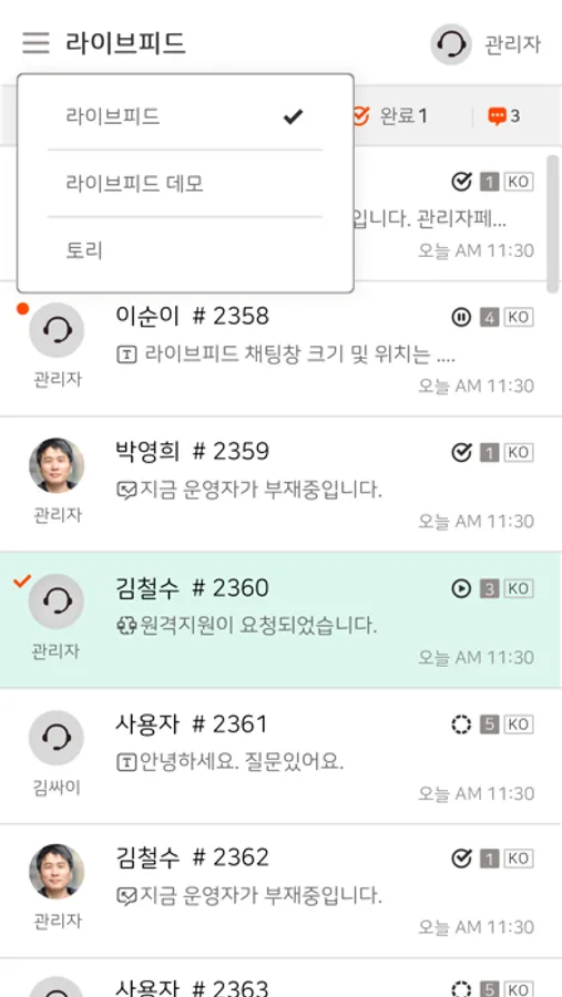 라이브피드의 채팅 관리자 앱입니다.