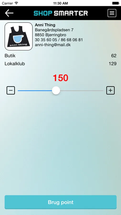 Med Shop Smarter optjener du BonusPoint hver gang du handler i en butik, der er tilknyttet Shop Smarter. BonusPoint kan du bruge til at betale med i de tilknyttede butikker, hvor du altså sparer penge.