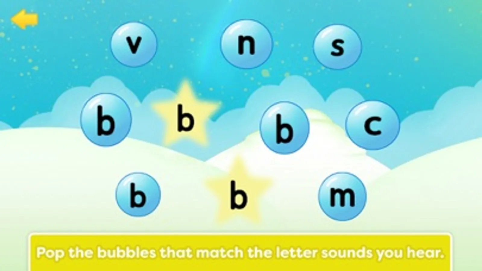 ◆ Bubble pop! — match letters to sounds by popping the bubbles that match the sounds you hear.