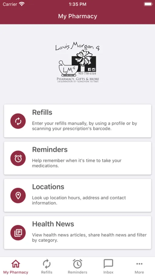 The Louis Morgan Drug app allows you and your family to securely communicate with your local pharmacy. Refill your prescriptions with one click, get refill reminders, get discounts at your local pharmacy, get savings on brand drugs and access Pharmacist written pages that help you understand your condition or medications.