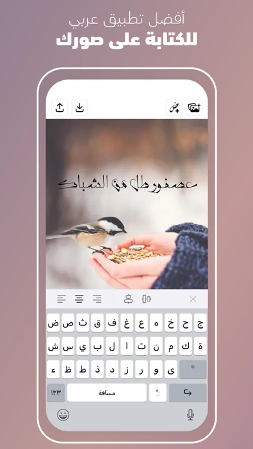 أهلا بكم إلى أحد أفضل وأكثر التطبيقات سهولة في الاستخدام، يمكنكم الآن اضافة النصوص الى صوركم المفضلة ومشاركتها مع اصدقائك عبر وسائل التواصل الاجتماعية مثل الفيسبوك وتويتر وانستقرام مجاناً وبلمسة واحدة!