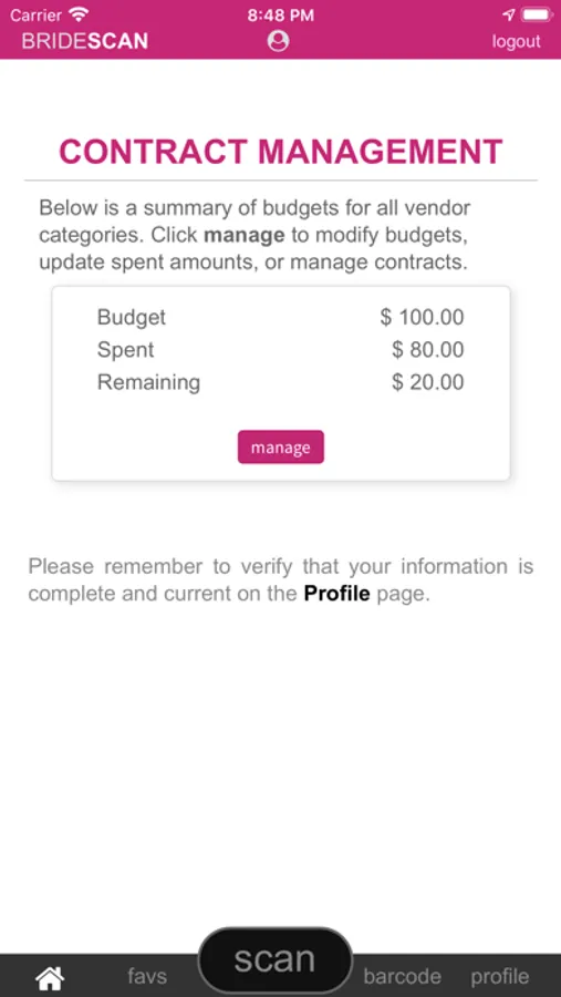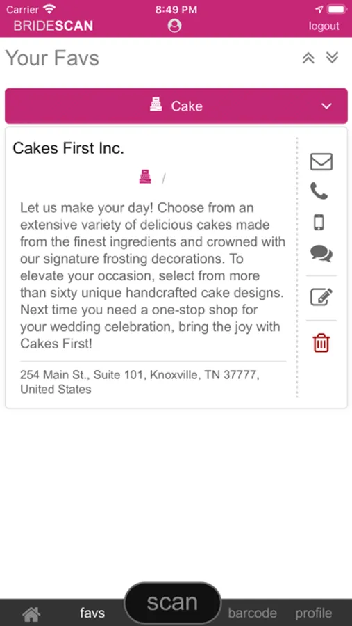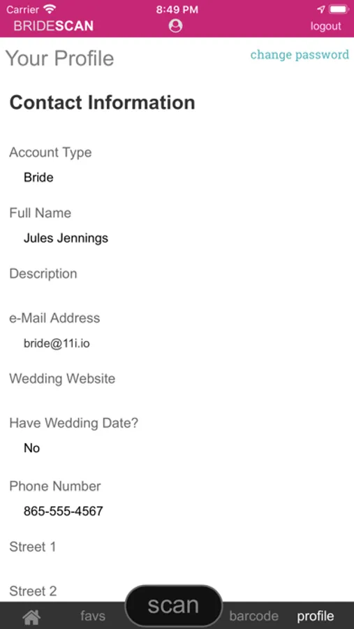 BrideScan is designed to link up wedding professionals and qualified brides based on needs, availability, and contact information. Now you can stay organized during each bridal show! Simply scan a participating party's bar code to instantly swap contact information and store other important details in your account. Log in to your account online for full access to all the contacts you've linked up with at a recent bridal show!