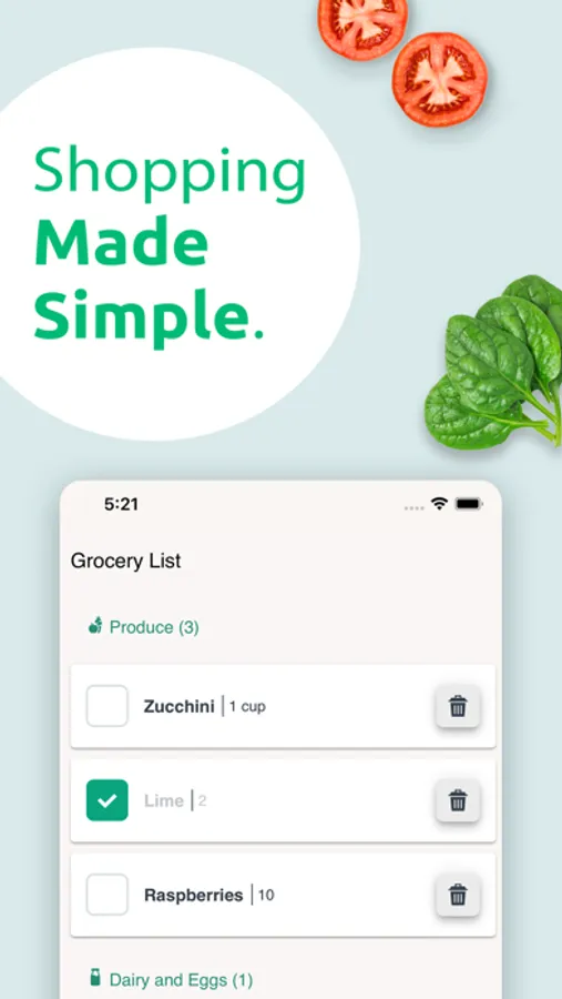 An easy-to-use shopping list. Add ingredients from your favorite recipes to your grocery list with one click.