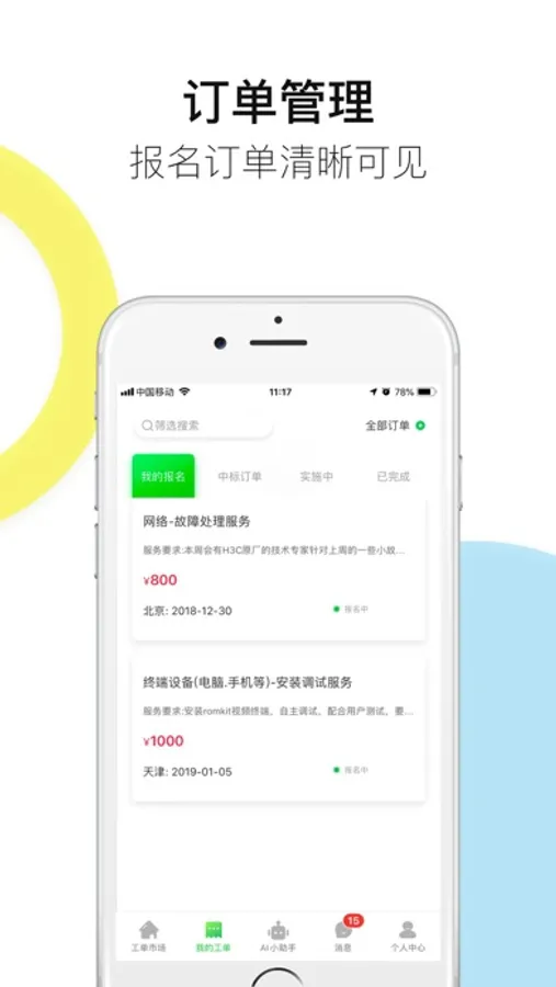 2、平台服务费用结算透明快捷,工单完成后5个工作日内付款,不会被恶意拖欠;