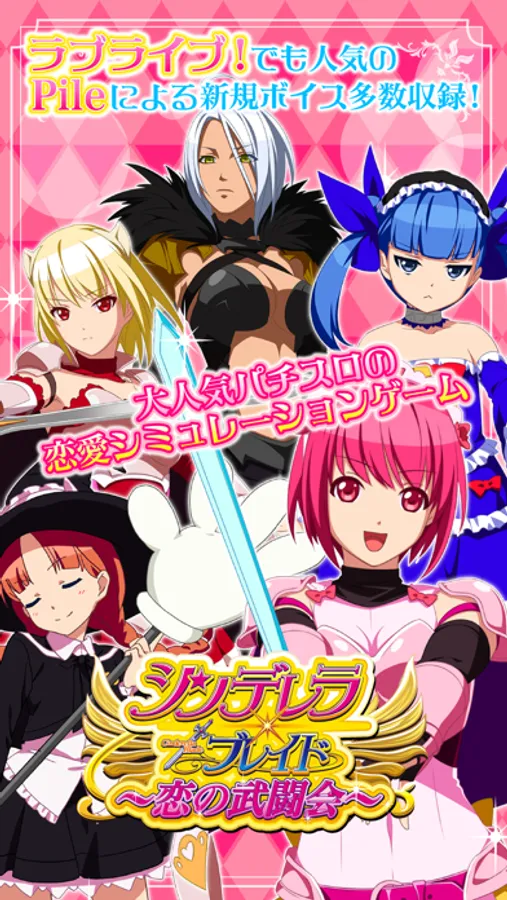 大人気パチスロ「シンデレラブレイド」の世界観をそのままに、キャラクターたちと一緒に武闘会で優勝を目指そう!ドキドキシチュエーションの恋愛シミュレーションゲームアプリがついに登場!彼女たちとのドキドキの冒険活劇をお楽しみください!