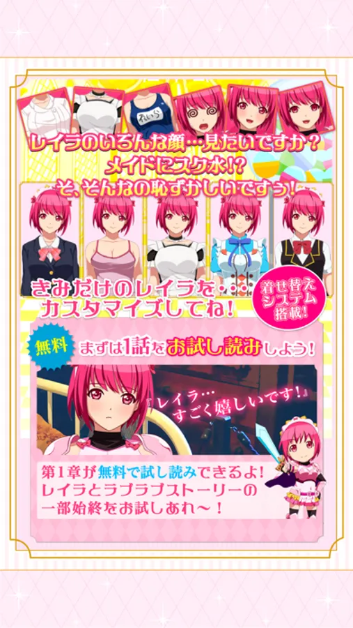自分の選んだキャラクターをカスタマイズ!制服、メイド、スク水…見たことない姿まで楽しめちゃうよ!自分だけのシンデレラに着せ替えてあげてね!