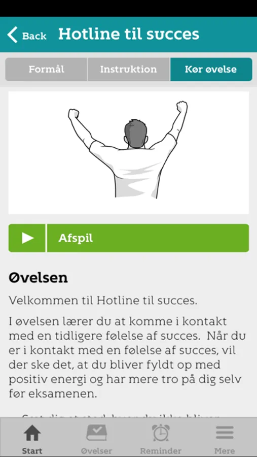 Øvelserne findes som både tekst og indtalt lydfil, så du kan ligge og lytte til dem.