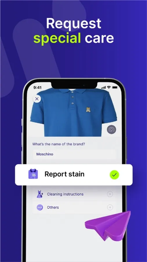 On the app, you can add special instructions on how you want us to package, fold, hang, crease or starch your items. You can also report stains or write notes for delicate/expensive items. We’ll make sure your items are well-taken care of and your instructions are followed.