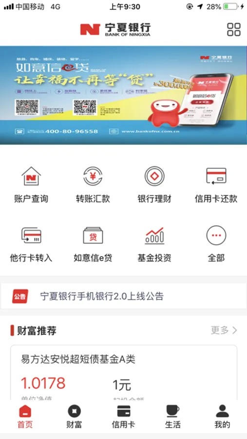 宁夏银行手机银行是为智能手机用户定制的,集金融服务和生活服务于一体的手机客户端,突出“安全、实惠、便捷”的特点,是宁夏银行服务客户的重要载体。