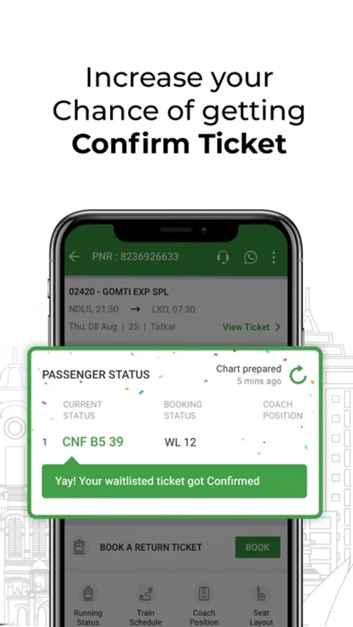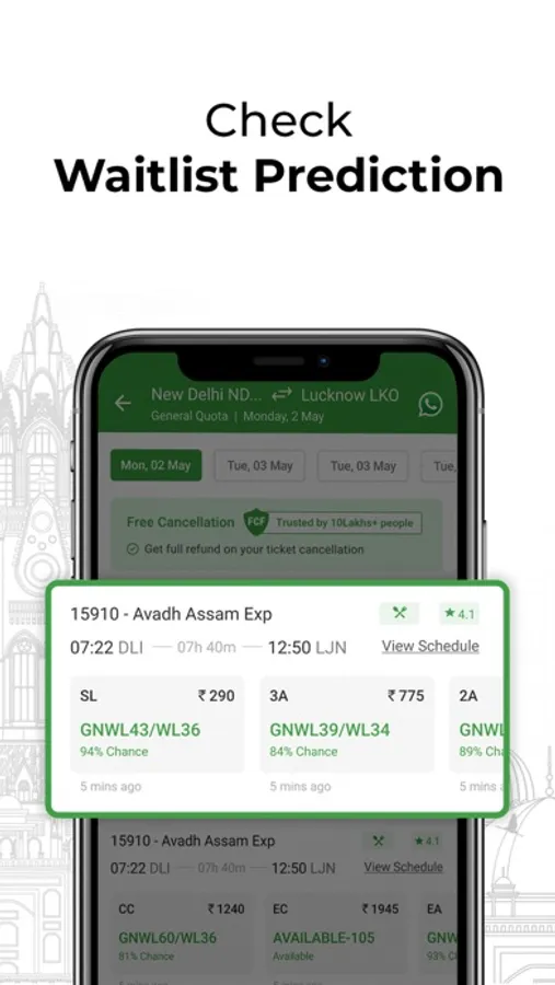 ● Get Confirmed Train Tickets powered by waitlist Prediction and the Same Train Alternates feature.
