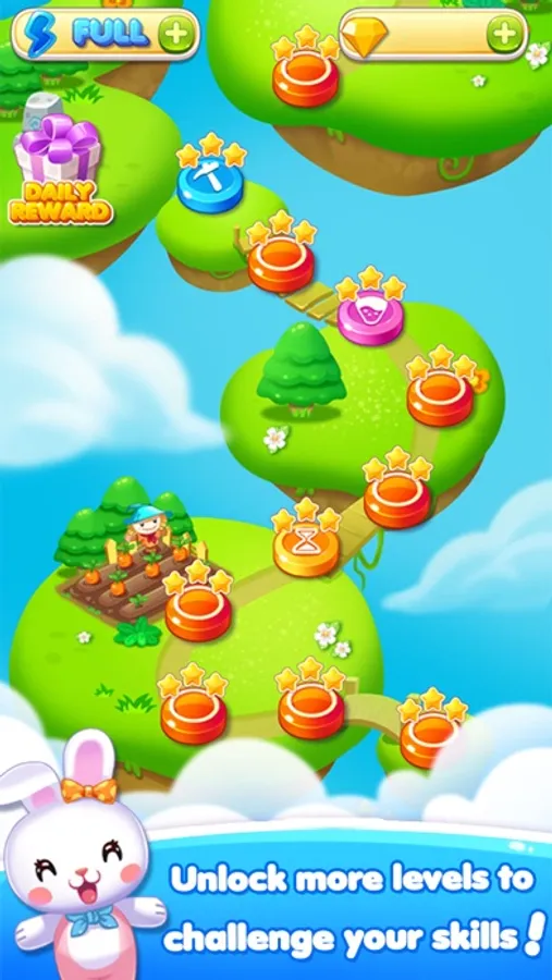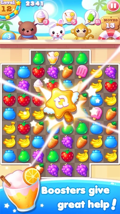 Create fruit chains,feed buddies,defeat evil boss; Fruit Bunny Mania is an all-new connect lines puzzle.