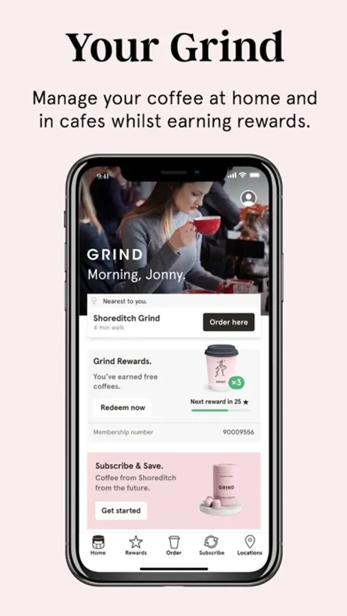 - Customise, order and pay for your coffee in any Grind, from anywhere.