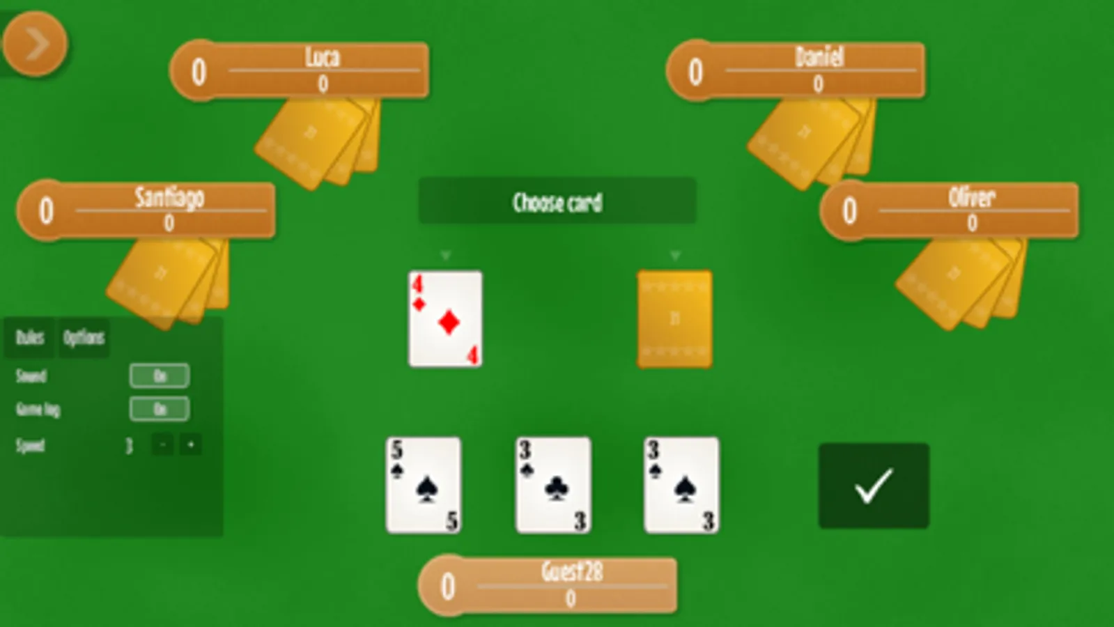 * At the beginning of your turn, you have the option to "knock" (knock button will show up at the beginning of your turn). If you knock and you have exactly 31 points you win instantly, otherwise, you lose your turn and the users will have 1 more turn before the round is over