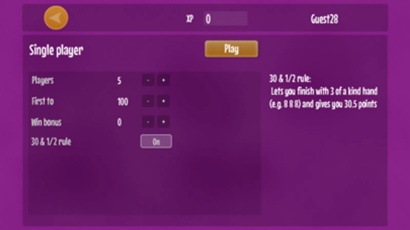 * 30 and 1/2 rule (if on, the player will receive 30.5 points for any 3-of-a-kind)