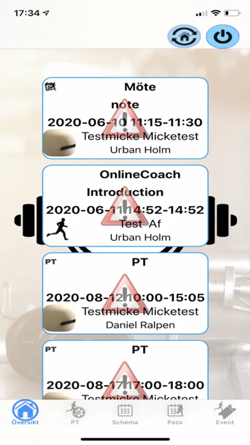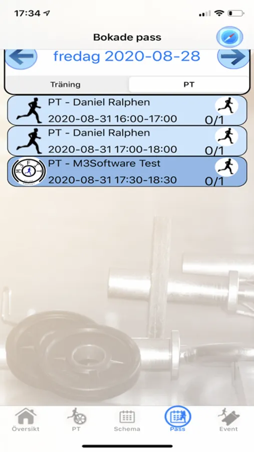 All bookings that are made (meetings/personal training) is synced with the M3Fit Member app.