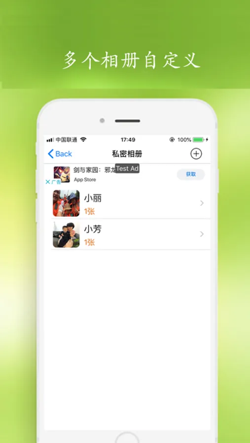 真实密码,你可以把真正需要存储的相片放在真实密码相册里面。