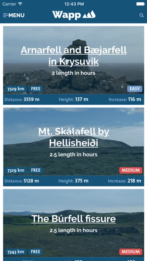 Why not take a tour with the Wapp and have an adventure outdoors using GPS activated pop-up facts, stories and photos on the area. The trails are of great variety and the experience meaningful and full of joy. It's not just about reaching the end but about enjoying the overall experience on the way. Try our new variety of trails in Iceland equipped with the important safety measure of always knowing your location as the route progresses.