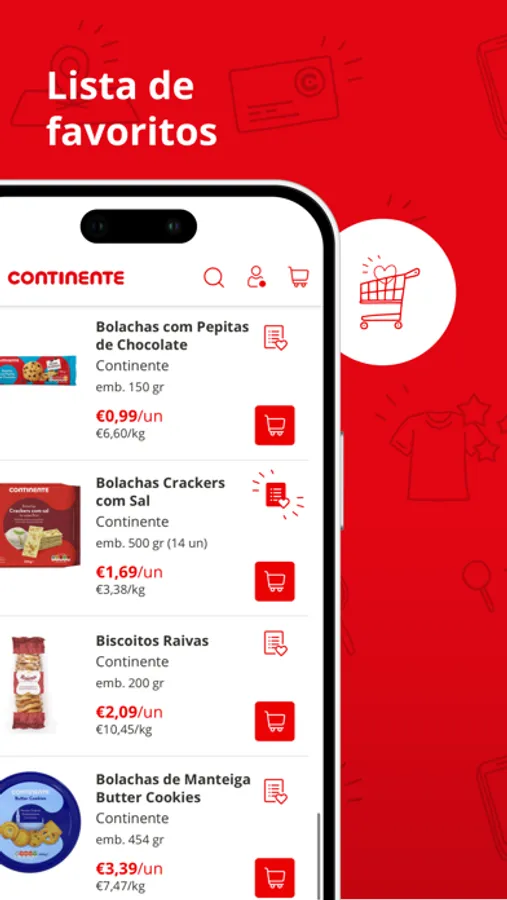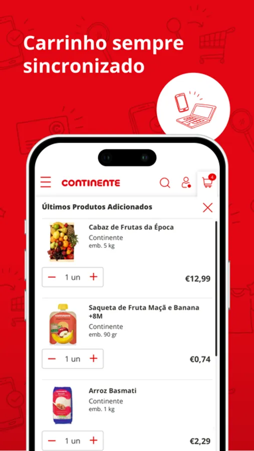 Pesquise os seus produtos usando o código de barras ou navegando nas diferentes categorias. Compre os produtos que necessita e guarde os seus favoritos para comprar mais tarde. O seu carrinho de compras está sempre sincronizado em todos os seus dispositivos.