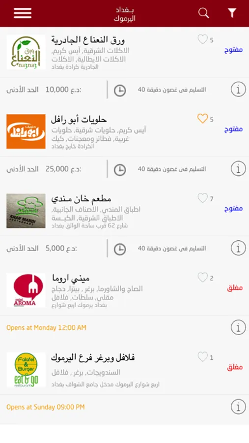 لدينا الكثير من المأكولات والمطابخ للاختيار من بينها. العراقية والعربية والإيطالية والهندية، بالإضافة إلى غيرها الكثير ... حتى أنك لا تحتاج ان تصرف على مكالمة هاتفية وبامكانك الطلب بمجرد النقر وانت جالس في مكانك!
