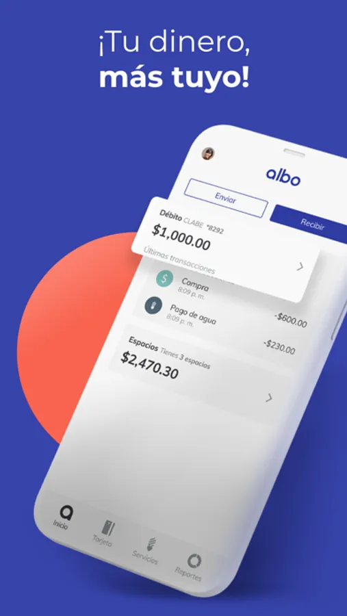 Con albo tienes todo lo necesario para enviar y recibir dinero, hacer compras, pagar tus servicios y administrar tu dinero. ¡Abre tu cuenta gratis y sin comisiones!
