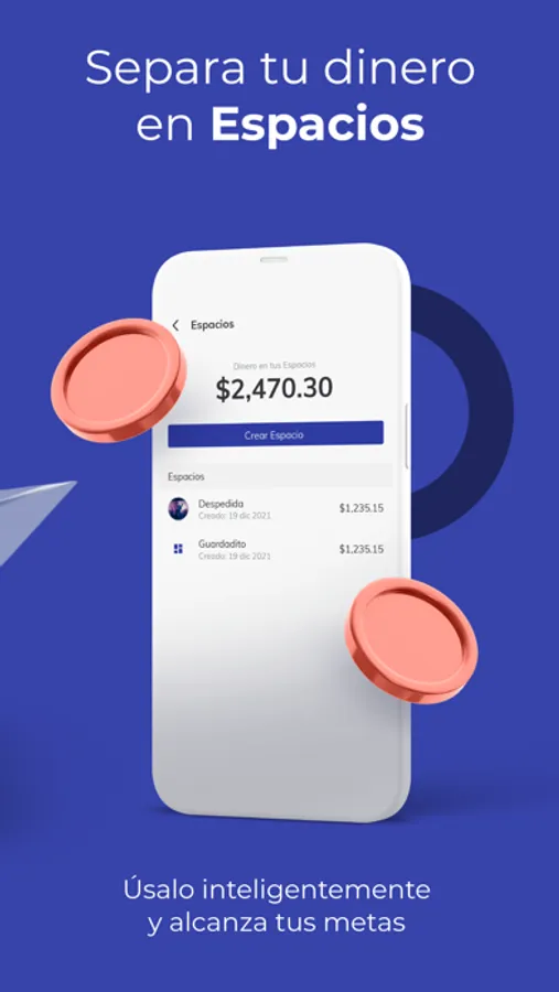 - Usa los Espacios de albo para organizar y separar tu dinero.