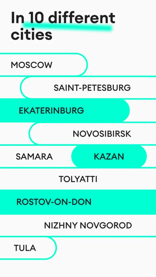 Wherever you are planning to go, you can most likely get there by a delimobil. And if you are going to travel around the country, you will meet our cars in 11 cities.