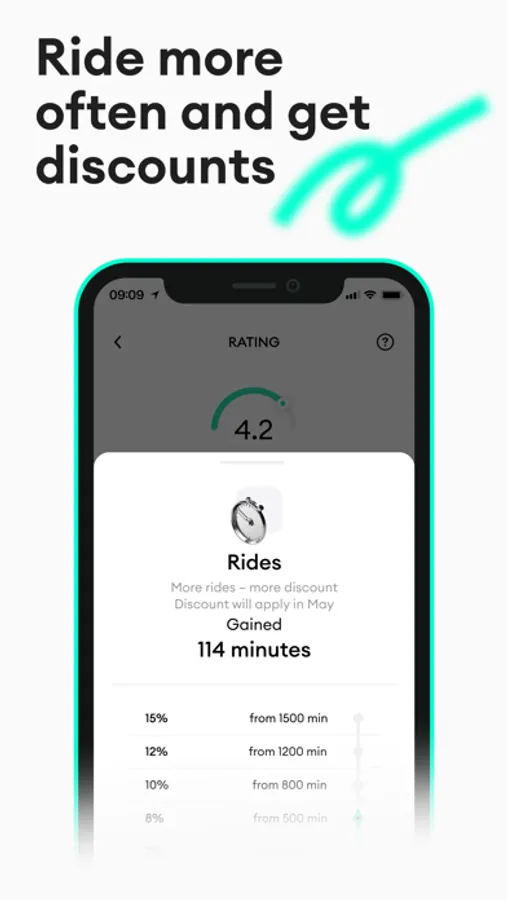 The cost of a minute depends on how you behave while driving. If you drive carefully, the price will be lower.