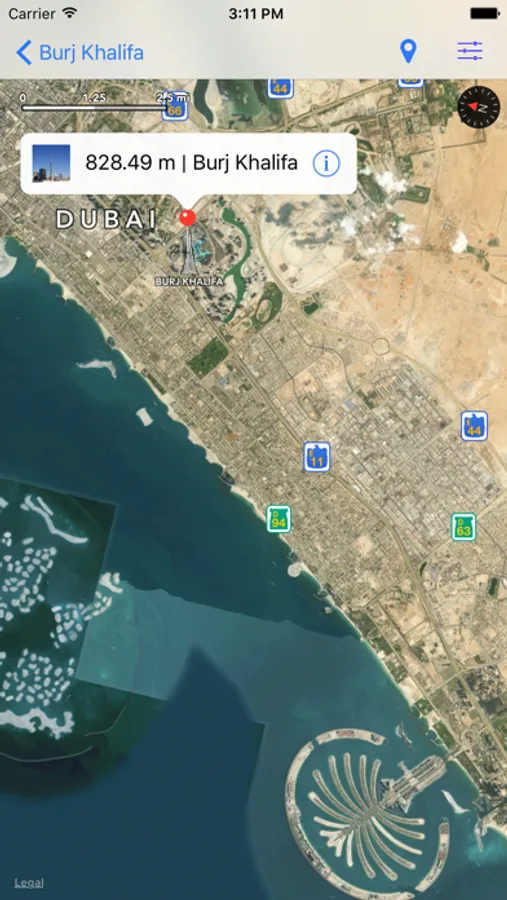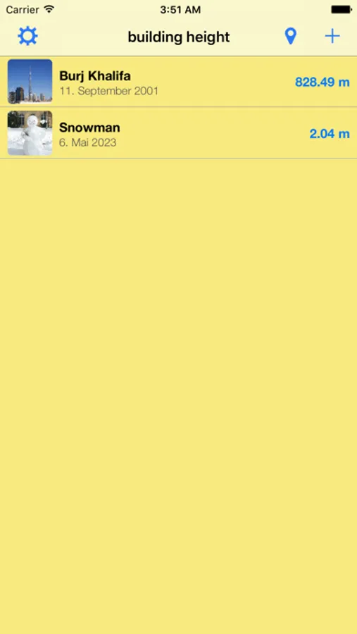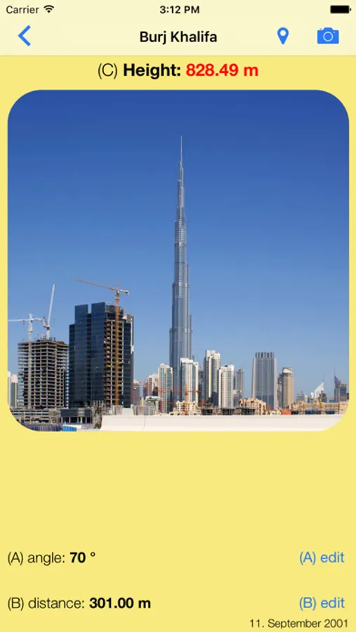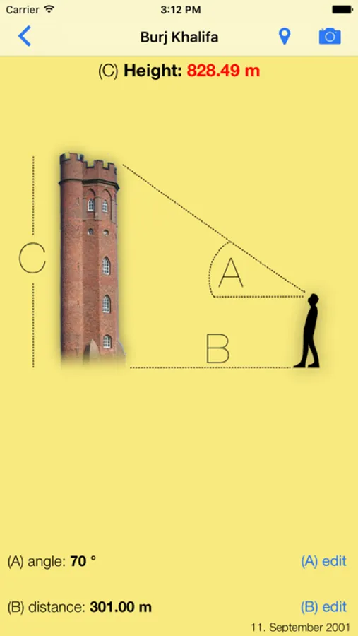 This app calculates the height of buildings, trees, street lights, room height , etc.