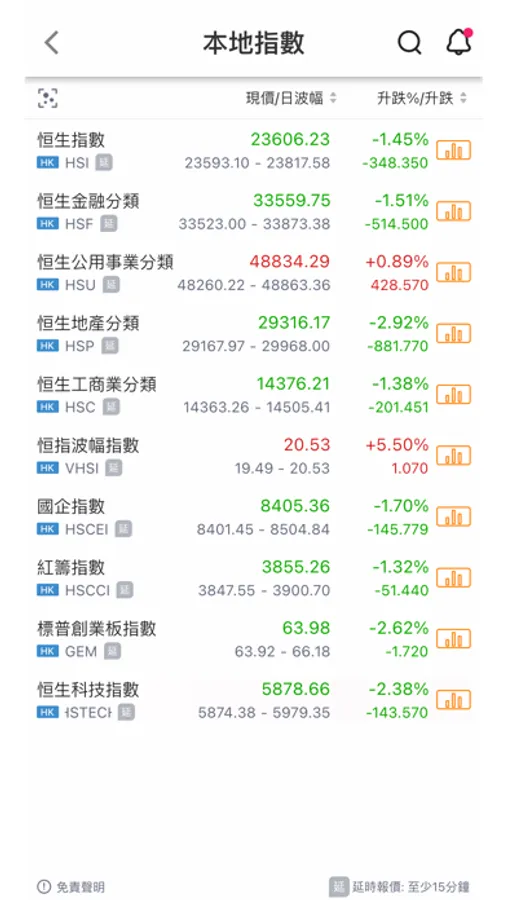 - 香港、中國及國際指數