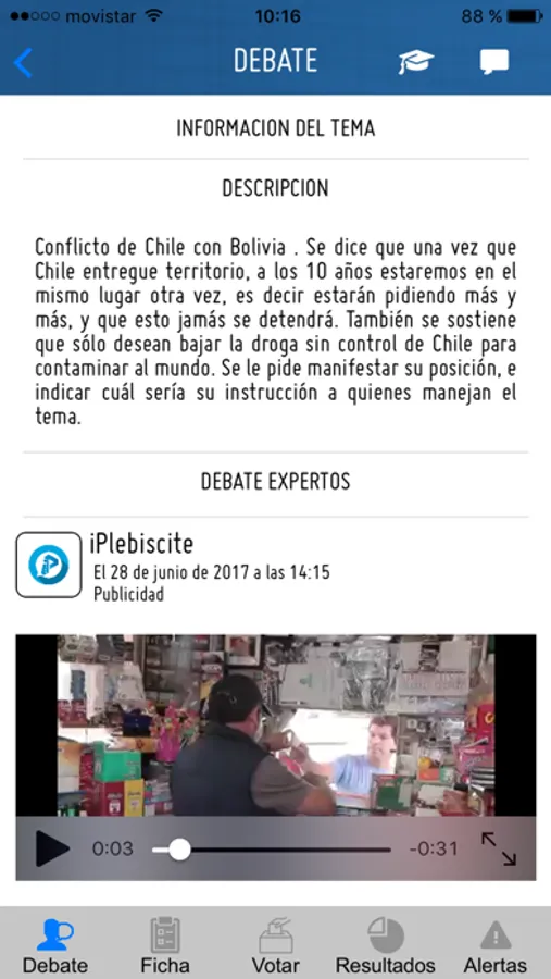 Este es un sistema de consulta popular que permite votar a toda la ciudadanía utilizando un celular , las personas bajan una aplicación , se registran y después podrán responder las consultas que se realicen a nivel nacional, regional o comunal y en las áreas en las cuales cada persona haya seleccionado como de su interés .