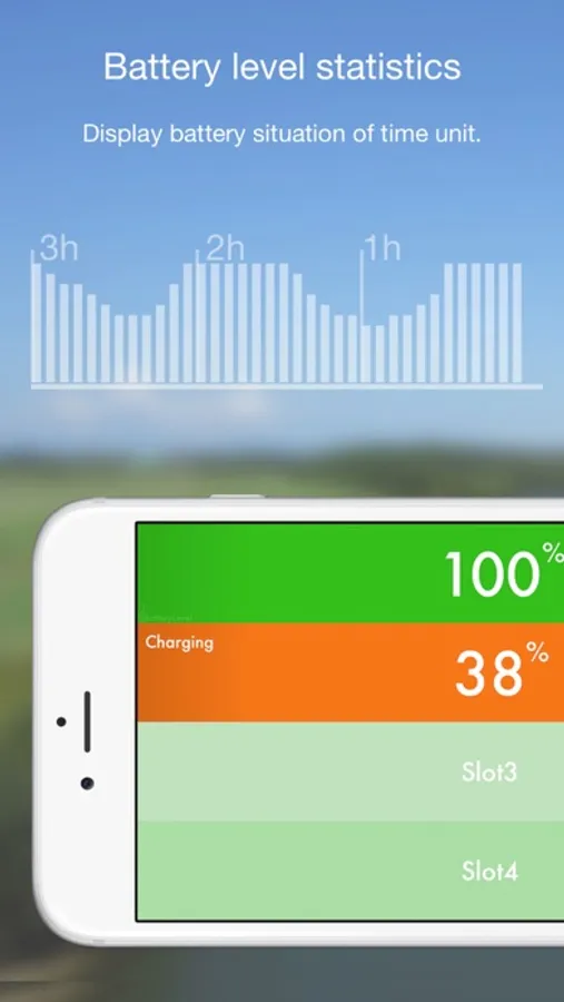 Easy-to-see battery status displayed in percentage and background colors for up to 4 devices