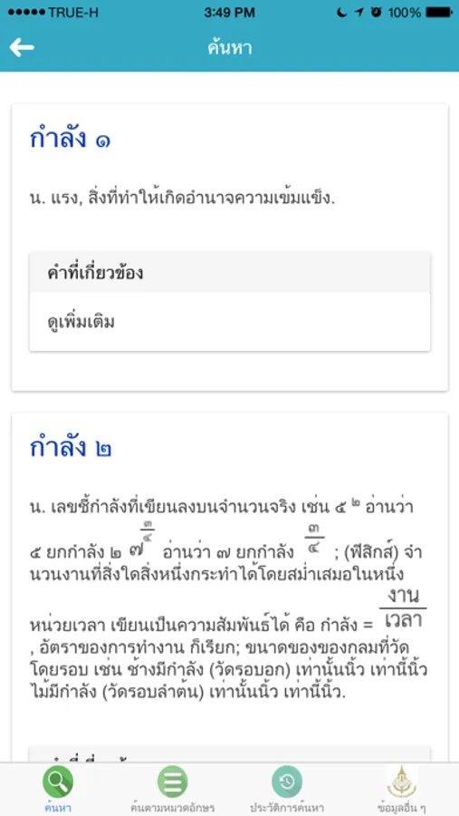 Royal Society Mobile: Thai Dictionary Version B.E 2554 is a revolutionary Thai dictionary featuring a wide coverage of 43,000 words from the legendary Royal Institute’s Dictionary (2011 Edition).