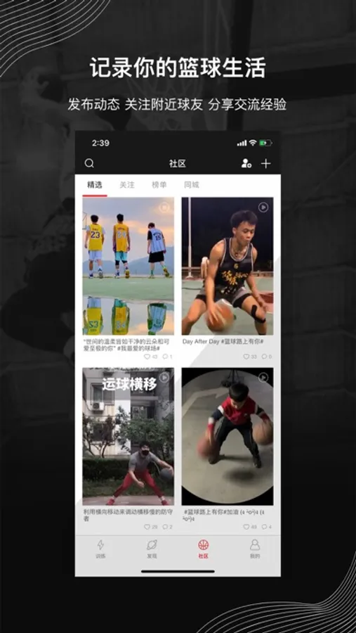 「在壹球社区,发布动态,记录你的篮球生活」;