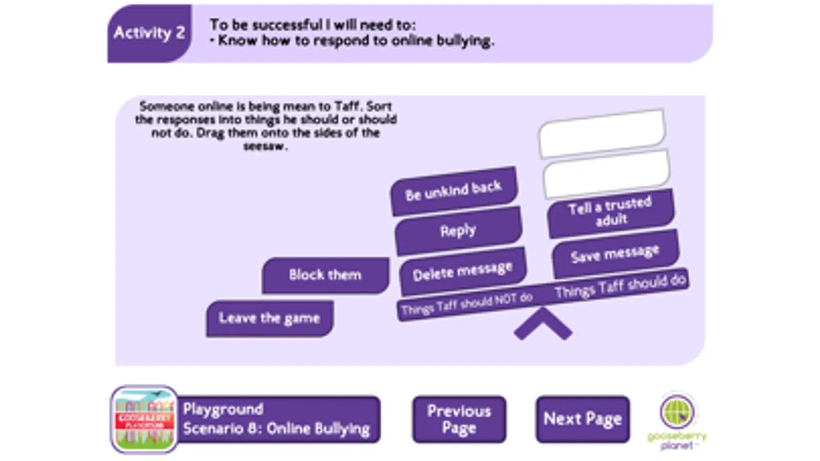 Gooseberry Student is part of the Gooseberry Planet Programme. It is a unique game app designed to teach children how to stay safe online. It comprises 51 short, scenario-based workbooks and games divided into 5 different age levels from 5-13 years.