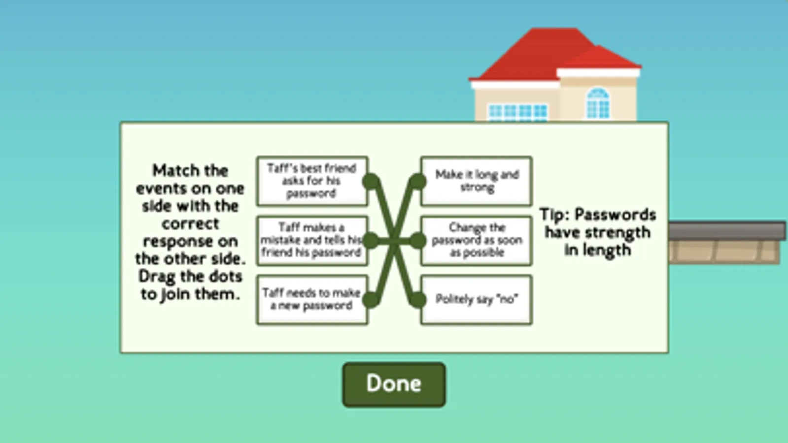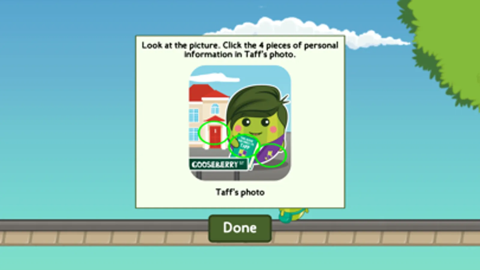 In each game, a character called Taff faces issues such as who to accept as a 'friend' online, how to create strong passwords through to issues of gaming, grooming and live streaming. The child attempts to help Taff make the right decisions by completing 4 questions in each game.