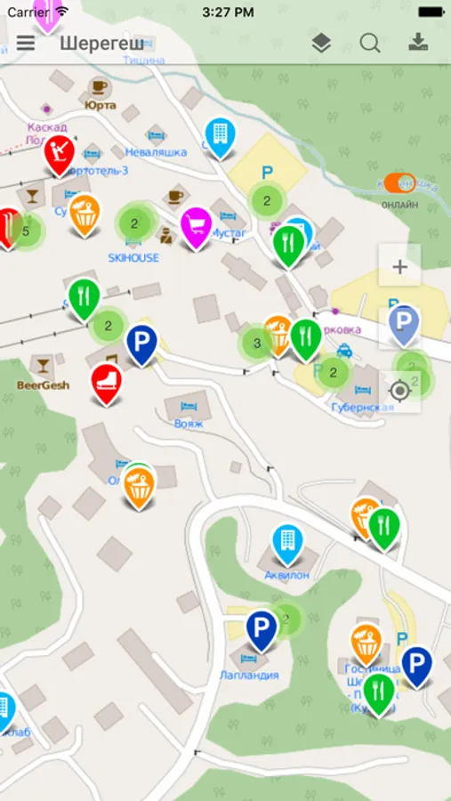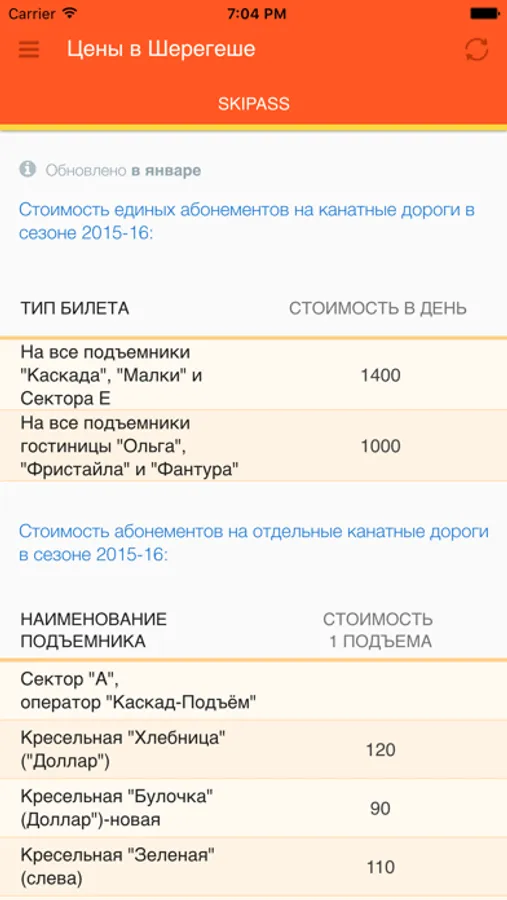 описание подъемников и трасс, цены на катание, парковки, магазины, банкоматы и пр.