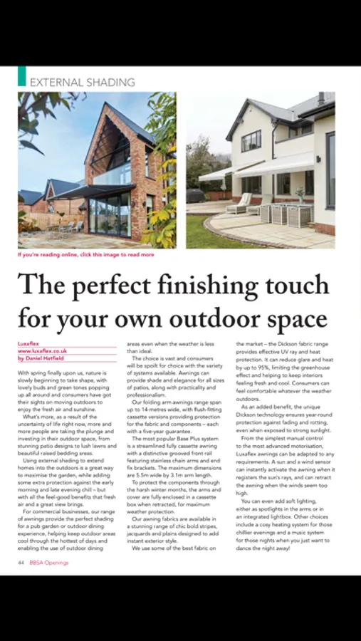 The BBSA's Openings magazine offers the most comprehensive and up-to-date coverage of the interior and exterior shading industry in the UK.