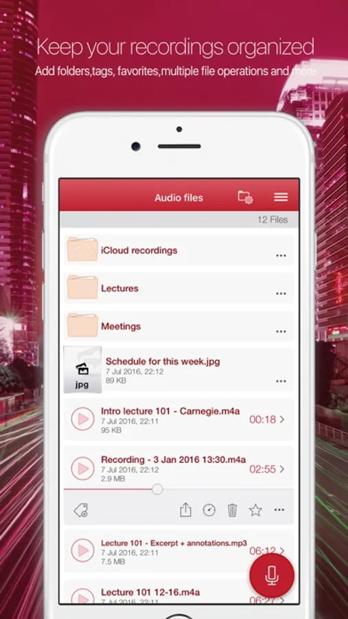 Audiologic is an universal app that works on iPhone,iPod touch and iPad. Files can be synced between your own devices or can be locally stored in one device only.