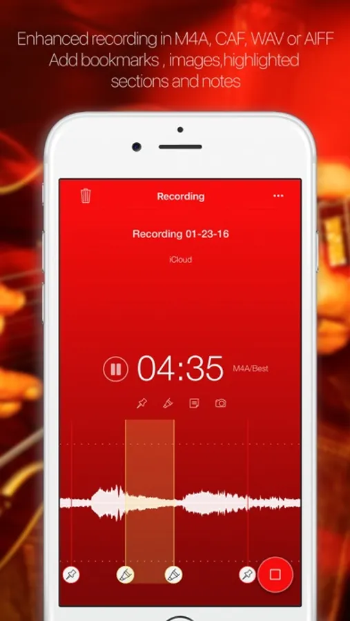 • Add bookmarks, notes, highlight sections and add photos while recording