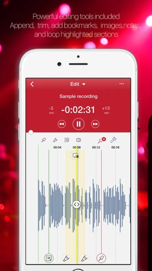 Recordings can be edited by cutting or appending tracks, highlighting sections and adding bookmarks notes or images is also possible