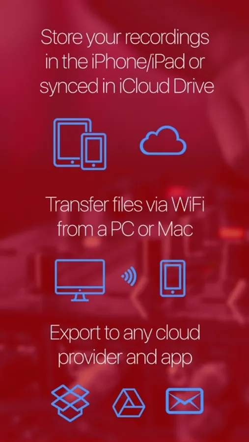 Import files from other apps or transfer them via WiFi between Audiologic and a computer connected to your network.