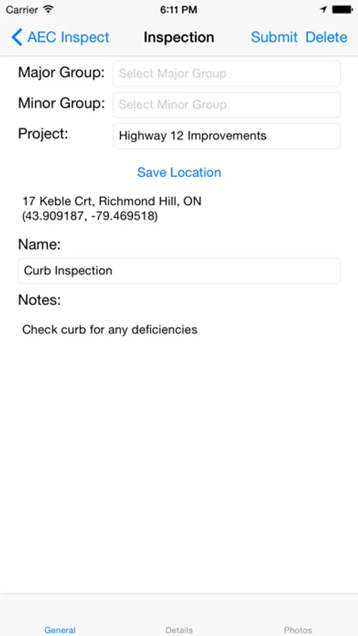 Capture valuable inspection data including weather, Lat/Long, address and unlimited photos with ease. Photos are geo-tagged and can be viewed using Photo Map. Drag and drop the GPS location of the inspection point based on a Map view of the area to precisely locate your inspection. Markup photos with your finger and caption photos to highlight specific features like deficiencies. Create and caption quick field sketches and colour code inspection data based on Lookup List values set in the field.