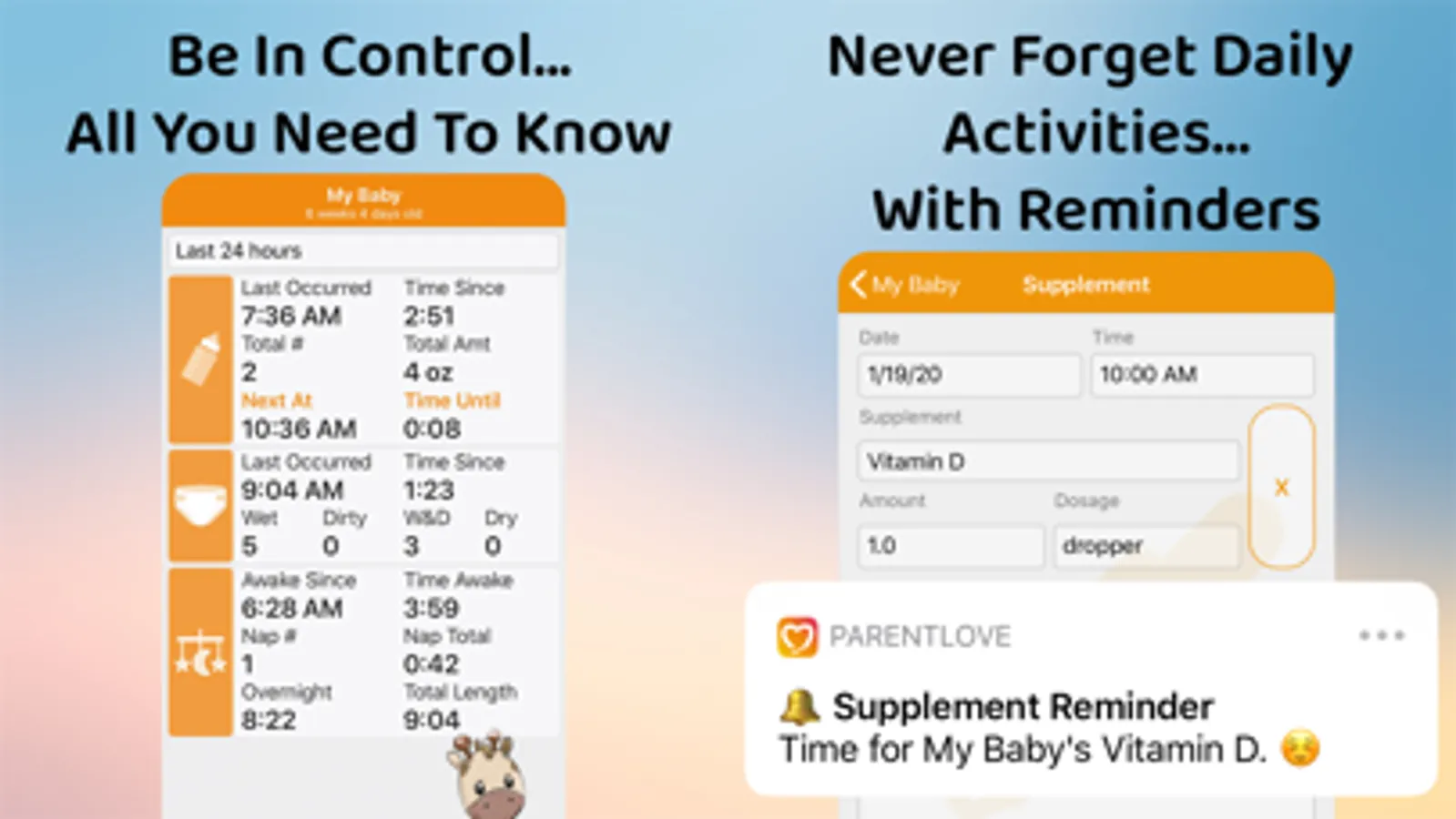 Passionately crafted by parents, ParentLove provides you with the simplest way to effortlessly record your baby's activities. Use the Glance summary, to help with estimating when baby is due for their next activity. Use the Journal to quickly review the most recent events to better understand your baby's routine.