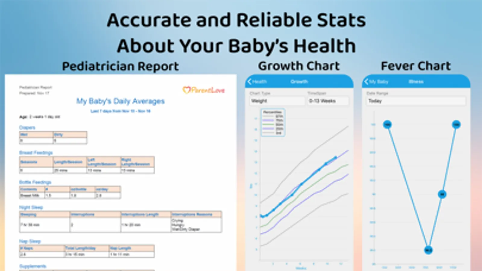 Sharing is a powerfully convenient way to stay connect with everyone caring for your baby. AutoSync ensures your data is securely stored in the ParentLove cloud and available to caregivers in real-time. Reports provide you with views into your baby’s trends and growth patterns enabling you to make informed decisions and better identify possible concerns.