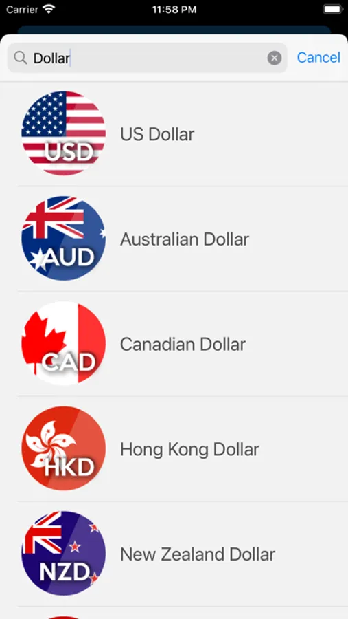 Dollar ,Yen , Euro , Yuan , Pound , Real , Peso , Dirham , Rupee , Dinar , Ruble , Won ,Bolivar, Riyad, Krone, CFA Franc, Shilling, Riyal, Rial, Kyat, Cedi, Mark, Naira, Kwanza, Manat, Lek etc.