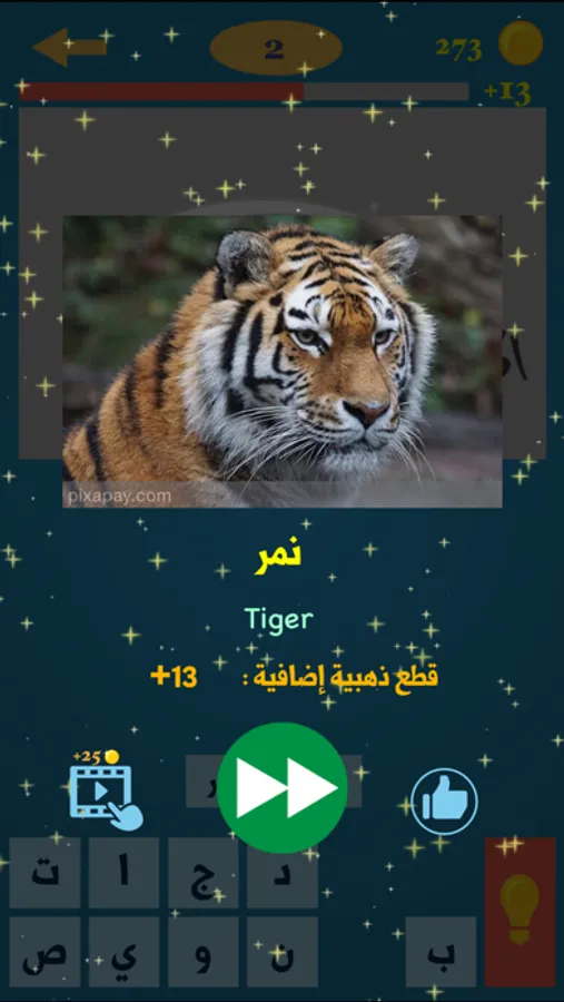 كما في جميع ألعابنا في سلسلة اكشط واحزر ,لتحقيق الفائدة إضافة للتسلية سيظهر اسم الصورة التي تحزرها باللغة الإنجليزية وبالتالي يتم ربط الصورة بالاسم مما سيساعد في زيادة رصيدك من المفردات الإنجليزية.