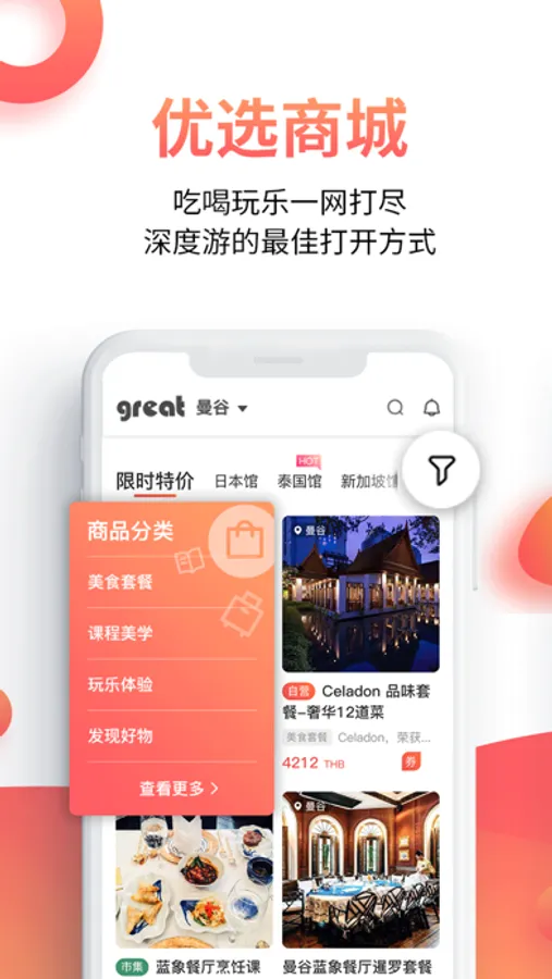 出境游餐厅订座、米其林美食、景点展馆门票、SPA按摩、特色体验、当地市集。旅行美食神器,精致看世界!你想要的旅程,Great懂你!