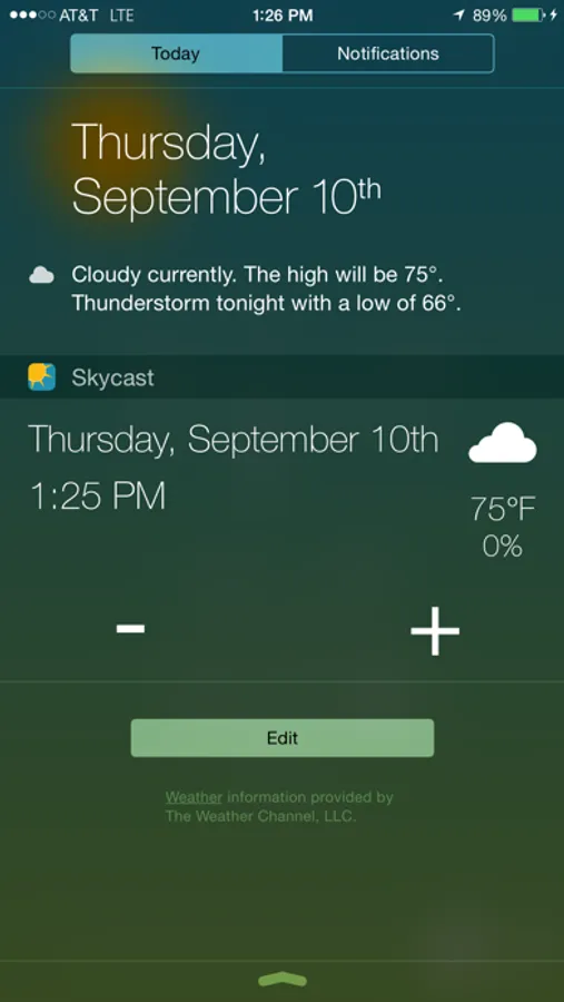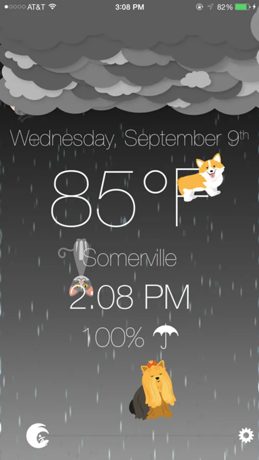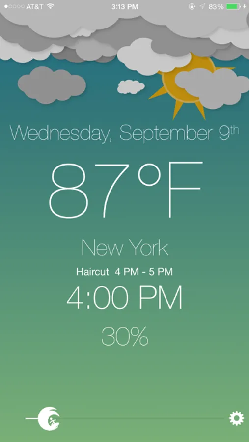 Skycast has hyperlocal weather powered by Forecast Dark Sky API. As you move the slider across the bottom, the animated cloud cover and precipitation will update with the accurate weather for that hour.