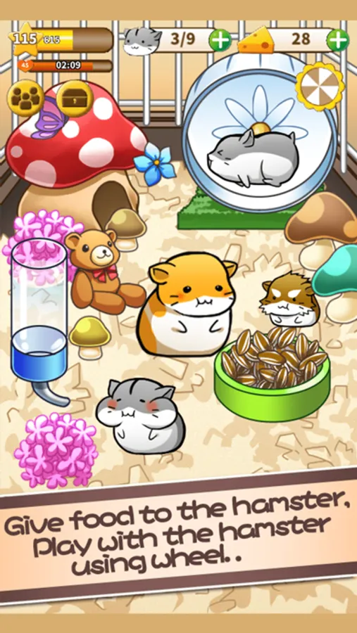 ・Use coin to add the mount of hamster, also can accumulate EXP easily.